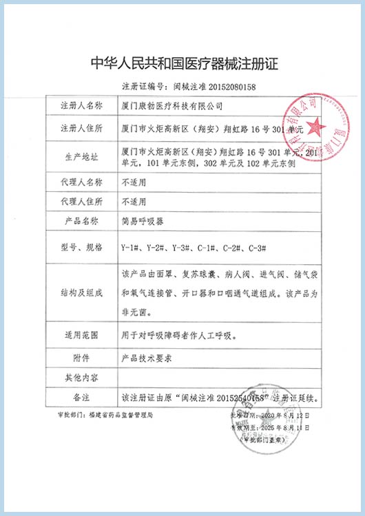 Manual resuscitator Registration certificate by CFDA