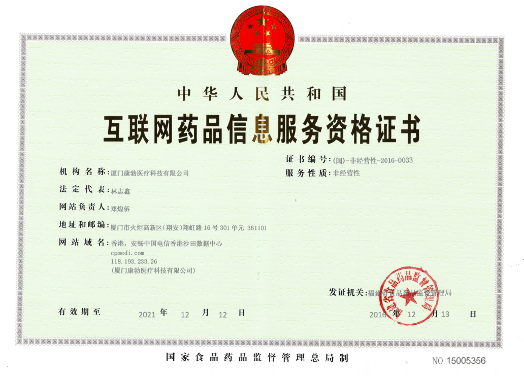 Internet sales certificate By CFDA