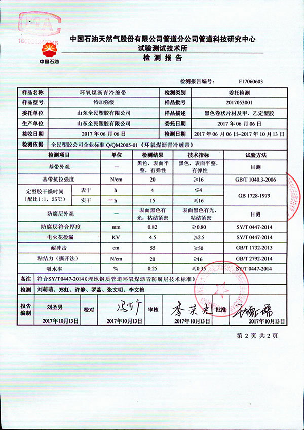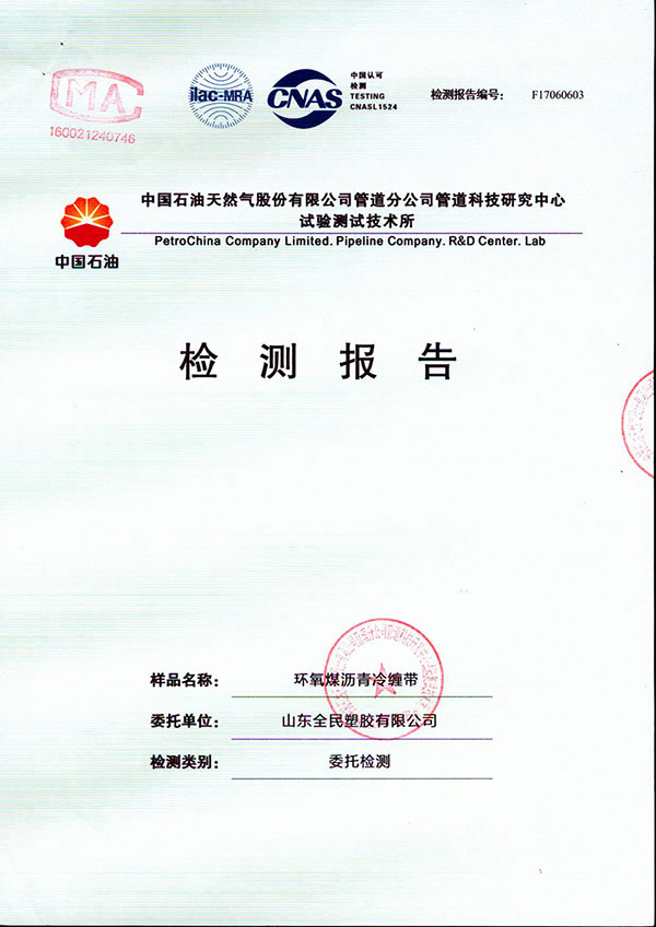 環(huán)氧煤瀝青冷纏帶第三方檢測報告